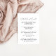 This delicate black wedding weekend schedule of events enclosure card is perfect for a modern wedding. The romantic minimalist design features lovely and elegant black typography on a white background with a clean and simple look.