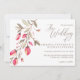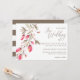 Trendy rustic style bridal shower invitations with a branch of pink watercolor flowers in bloom and white and gray striped pattern on the revers of the card. These invites are perfect for a country, farmhouse, garden party or barnyard or style wedding shower.