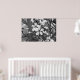 This pretty print features a black & white photo of delicate blossoms.