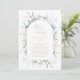 Celebrate your special day with this elopement reception invitation! Features a delicate dusty blue floral botanical arrangement, framing an arch holding all your event details in soft, delicate, elegant and whimsical gold fonts. Contact designer for matching products. Copyright Susan Mingay Koehrn for Susan Mingay Designs, all rights reserved.