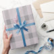 Delicate gray and blush pink stripes plaid Christmas holiday wrapping paper.
