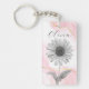 Celebrate her coming-of-age with a floral keepsake she'll cherish! This elegant custom keychain features a hand-drawn black and white daisy over a dreamy blush pink and gold watercolor background. Perfect as a thoughtful giveaway for Quinceañeras, Sweet 16 parties, or even bridesmaid gifts. Personalize it with a name or meaningful word to create a truly special favor. Stylish, feminine, and full of heart.
