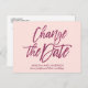 Delicate Blush Pink glitter script change the date Announcement Postcard