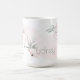 Monogram Floral Letter A - A pale blush pink watercolor wash behind delicate blush pink cottage roses. Pretty watercolor floral sprays on both sides of the mug - and decorate the large first letter of your name. Delicate hand painted smokey green foliage and watercolor sweetheart roses in blush pink is perfect for any Bridesmaid gift, Mother's Day or Birthday occasion. Just complete the name that starts with the Floral Letter (or delete the name and just have the letter monogram) . Design created by WhimsicalArtwork™ This is also part of a complete wedding suite offered by theBarefootBride™.