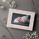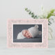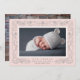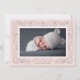 An intricate botanical border in pale blush pink and elegant gray frames your favorite horizontal newborn photo in this beautiful birth announcement for brand new baby girls. Personalize with your new arrival's name, birth stats and your names beneath the photo. Add a second photo to the back if desired, or remove the sample photo to reveal a pattern of blush and white stripes.