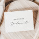 This delicate calligraphy bridesmaid proposal card is perfect for a modern wedding. The romantic minimalist design features lovely and elegant black typography on a white background with a clean and simple look. Customize the card with the name of the bride and the bridesmaid. Personalize the back of the card with a personalized message.