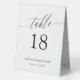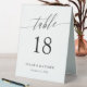 Elegant table tent sign in black and white with a delicate calligraphy script. Add your names and wedding date too!