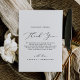 This delicate calligraphy thank you reception card is perfect for a modern wedding. The romantic minimalist design features lovely and elegant black typography on a white background with a clean and simple look. Place these cards at the table setting for each of your guests at your wedding reception. Personalize the card with your names and a special thank you message.