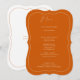 This classic menu card in bracket shape features modern calligraphy, a delicate white frame and contemporary typography on a bold Burnt Orange background. Perfect for a modern wedding or any other elegant event. On the back is a second delicate frame and room for your names and wedding date - or simply delete the text on the back. All colors of this wedding menu card can be changed.