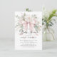 Celebrate the arrival of your little one with our exquisite pink blush baby shower invitation, designed to capture the essence of joy and elegance. Adorned with a charming coquette pink bow and delicate white and light pink roses, this invitation sets the perfect tone for your special gathering. Its soft color palette and floral accents create a warm and inviting atmosphere, ensuring your guests feel cherished from the moment they receive it. Make your baby shower unforgettable with this beautifully crafted invitation that reflects your love and excitement for the new addition to your family.