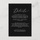 This delicate dark black calligraphy details enclosure card is perfect for a modern wedding. The romantic minimalist design features lovely and elegant white typography on a black background with a clean and simple look.
