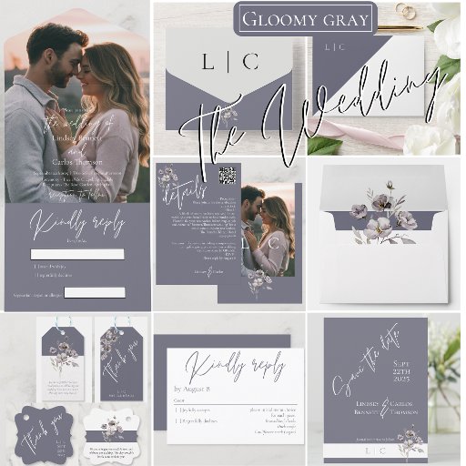 Delicate dusty purple flower watercolor GloomyGray Invitation Belly Band