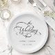 Delicate Elegant Script Wedding Black & White Paper Plates
