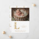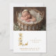 Delicate Romantic Floral L Initial in Gold Glitter Effect for Newborn Photo Announcement Card Design.