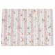 Delicate Floral Pattern Pink Large Gift Bag - The floral pattern featuring delicate pink and yellow blossoms with green leaves scattered across a background of pink and white stripes. The white stripes are edged with a decorative, lace-like border.