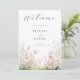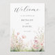 This design features a delicate watercolor illustration of wildflowers in shades of green and pink.