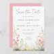This design features an illustration of delicate wildflowers and butterflies in shades of pink and green.