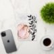 Chic and modern birth announcement features a single vertical/portrait oriented photo in an arched layout, with climbing vines of rose gold foil botanical leaves along the right side. Personalize with your baby's name, birth date, and stats, and add a personal message to the back, along with an additional photo.