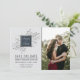 This save the date features charm and simplicity, with the bride and grooms names centered atop a bed of delicate foliage, and a photo of the bride and groom. Change the color of the square in the middle to suite any color choice you have for your wedding! Please contact us if you would like help with customizing this invitation.