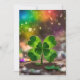 Delicate four-leaf clover in the sunlight holiday card