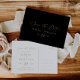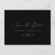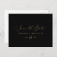 This delicate gold and black save the date postcard is perfect for a modern wedding. The romantic minimalist design features lovely and elegant champagne golden yellow typography on a black background with a clean and simple look.