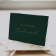 This delicate gold and green bridesmaid folded card is perfect for a modern wedding. The romantic minimalist design features lovely and elegant champagne golden yellow typography on an emerald green background with a clean and simple look. The inside of the card is blank for you to hand write a personal message.