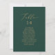 These delicate gold and green table number seating chart cards are perfect for a modern wedding. The romantic minimalist design features lovely and elegant champagne golden yellow typography on an emerald green background with a clean and simple look. The card prints on the front and back (double-sided).