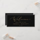 This delicate gold black hanging seating chart welcome header is perfect for a modern wedding. The romantic minimalist design features lovely and elegant champagne golden yellow typography on a black background with a clean and simple look. The card prints on the front and back (double-sided). Please check the collection for the coordinating table number seating chart cards.