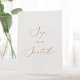 This delicate gold calligraphy sip and be seated pedestal sign is perfect for a modern wedding. The romantic minimalist design features lovely and elegant champagne golden yellow typography on a white background with a clean and simple look.