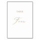 This delicate gold calligraphy table four table number is perfect for a modern wedding. The romantic minimalist design features lovely and elegant champagne golden yellow typography on a white background with a clean and simple look. The card prints on the front and back (double-sided). Other table numbers in the collection are sold separately.