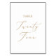 This delicate gold calligraphy table twenty four table number is perfect for a modern wedding. The romantic minimalist design features lovely and elegant champagne golden yellow typography on a white background with a clean and simple look. The card prints on the front and back (double-sided). Other table numbers in the collection are sold separately.