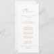 This delicate gold calligraphy wedding dinner menu card is perfect for a modern wedding. The romantic minimalist design features lovely and elegant champagne golden yellow typography on a white background with a clean and simple look. This menu can be used for a wedding reception, rehearsal dinner, or any event.