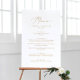 This delicate gold calligraphy wedding dinner menu foam board is perfect for a modern wedding. The romantic minimalist design features lovely and elegant champagne golden yellow typography on a white background with a clean and simple look. This menu can be used for a wedding reception, rehearsal dinner, or any event.