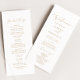 This delicate gold calligraphy wedding program is perfect for a modern wedding. The romantic minimalist design features lovely and elegant champagne golden yellow typography on a white background with a clean and simple look. Include the name of the bride and groom, the wedding date and location, thank you message, order of service, bridal party and an optional "in loving memory" memorial.