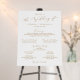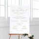 This delicate gold calligraphy wedding program foam board sign is perfect for a modern wedding. The romantic minimalist design features lovely and elegant champagne golden yellow typography on a white background with a clean and simple look. Include the name of the couple, the wedding date, names of the parents, officiant, and wedding party.
