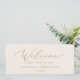 This delicate gold cream hanging seating chart welcome header is perfect for a modern wedding. The romantic minimalist design features lovely and elegant champagne golden yellow typography on an ivory cream background with a clean and simple look. The card prints on the front and back (double-sided). Please check the collection for the coordinating table number seating chart cards.