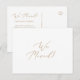 This delicate gold new home We've Moved moving announcement postcard is the perfect modern change of address card. The romantic minimalist design features lovely and elegant champagne golden yellow typography on a white background with a clean and simple look.