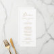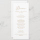 This delicate gold wedding dinner menu card is perfect for a modern wedding. The romantic minimalist design features lovely and elegant champagne golden yellow typography on a white background with a clean and simple look. This menu can be used for a wedding reception, rehearsal dinner, or any event.