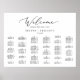 This delicate horizontal alphabetical seating chart is perfect for a modern wedding. This horizontal sign can be used to organize your guests alphabetically or by table number by changing the headings. The romantic minimalist design features lovely and elegant black typography on a white background with a clean and simple look. This wedding poster includes enough room for up to about 100 guests. Make room for more (or less) guests by clicking the "customize" button and decrease or increase the size of the font. In addition to the placement of each guest, personalize this sign with the names of the bride and groom and the wedding date.