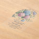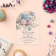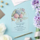 An acrylic wedding invitation featuring delicate hydrangea flowers in shades of dusty rose, light purple, and blue.