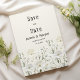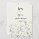 A delicate ivory and white floral arrangement graces this elegant wedding Save the Date invitation, symbolizing purity and timeless love. Soft petals and subtle greenery create a romantic, minimalist aesthetic. Perfect for classic or garden-themed weddings, this design exudes charm and sophistication. Let your special day begin with beauty and grace. Customize this design with your message and personalized information. All designs are printed.