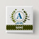 Delicate Ivy Wreath and Bow Name with Monogram A Button