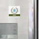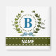 A delicate ivy wreath with a blue striped bow is layered over a fresh white background. Wedding appropriate design features the monogram "B" in blue. Magnet can be personalized with any name over the green ribbon banner. Design tip: For the font shown here, use all caps for the name.