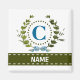 A delicate ivy wreath with a blue striped bow is layered over a fresh white background. Wedding appropriate design features the monogram "C" in blue. Magnet can be personalized with any name over the green ribbon banner. Design tip: For the font shown here, use all caps for the name.