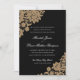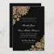Delicate Lace Corner Black and Gold Script Wedding Invitation