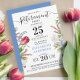 This stylish retirement party invitation has a unique design featuring a floral theme with magenta red tulip, green leaves, lavender blue and white botanical | wild flowers. This beautiful, garden sample is set up on a simple white background. You can almost feel the fresh air of a spring meadow.