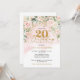 Delicate light pink roses green gold 20th birthday invitation