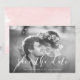 This elegant, modern save the date photo card features a soft, blush pink watercolor look on the back.