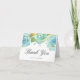 Hand painted watercolor flowers in blue, teal, gold, and green adorn the top of this elegant thank you note card. Beautiful cards for sending personalized thank you notes following your wedding or other special occasion!