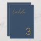 Modern and elegant design printed Delicate Minimalist Simple Navy Blue & Gold Table Number Cards that can be customized with your text and add each table number card to your cart, one by one. Check out the Graphic Art Design store for other products that match this design!